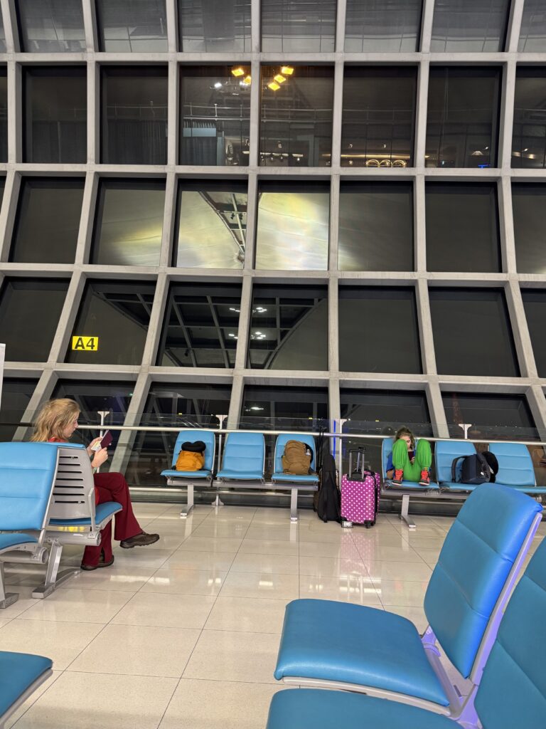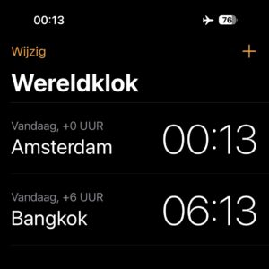 Van Deli naar Bangkok was minder comfortabel vanwege een kleiner toestel. Op Bangkok airport moesten we best lang wachten, maar er werd lekker gelezen, dus geen probleem.