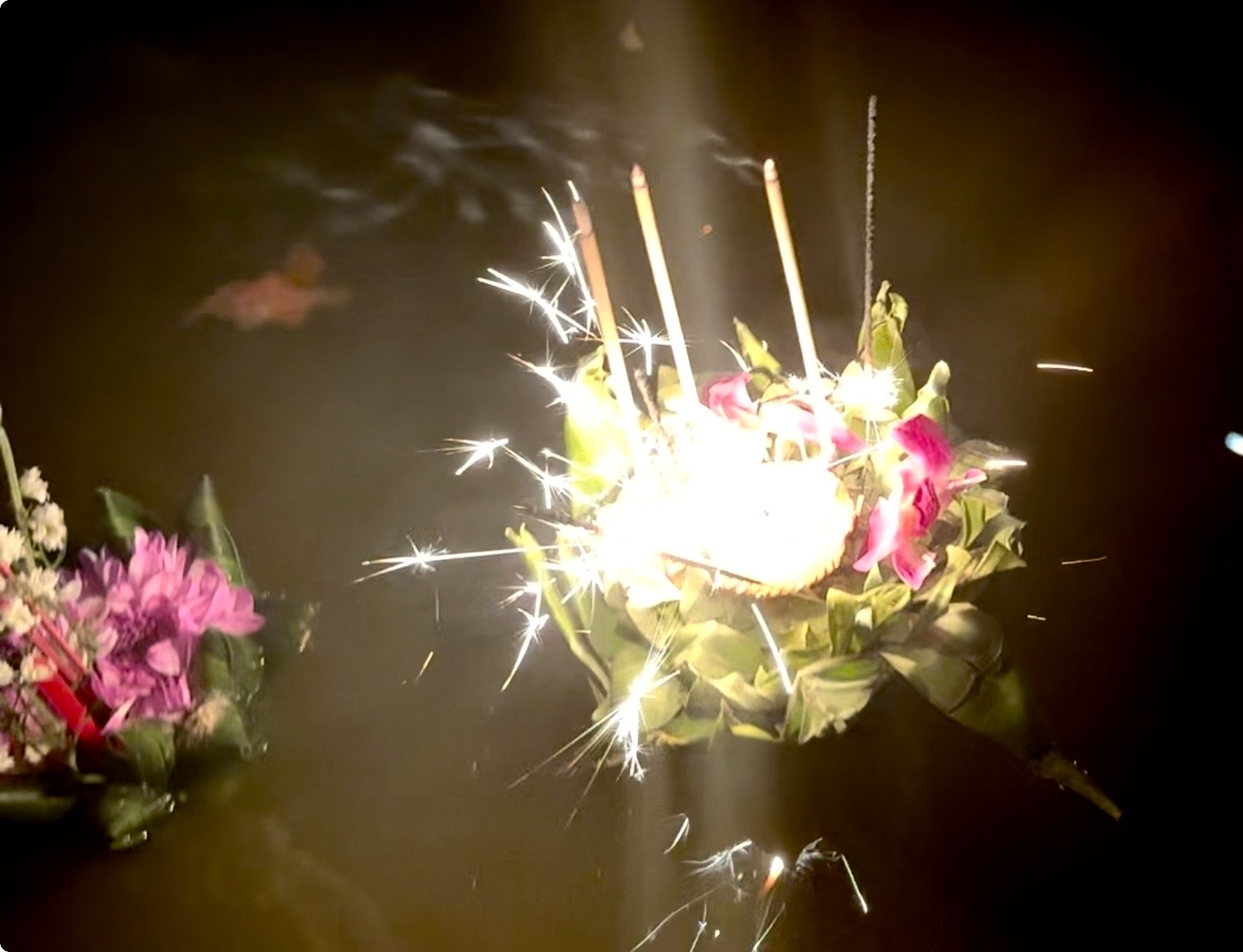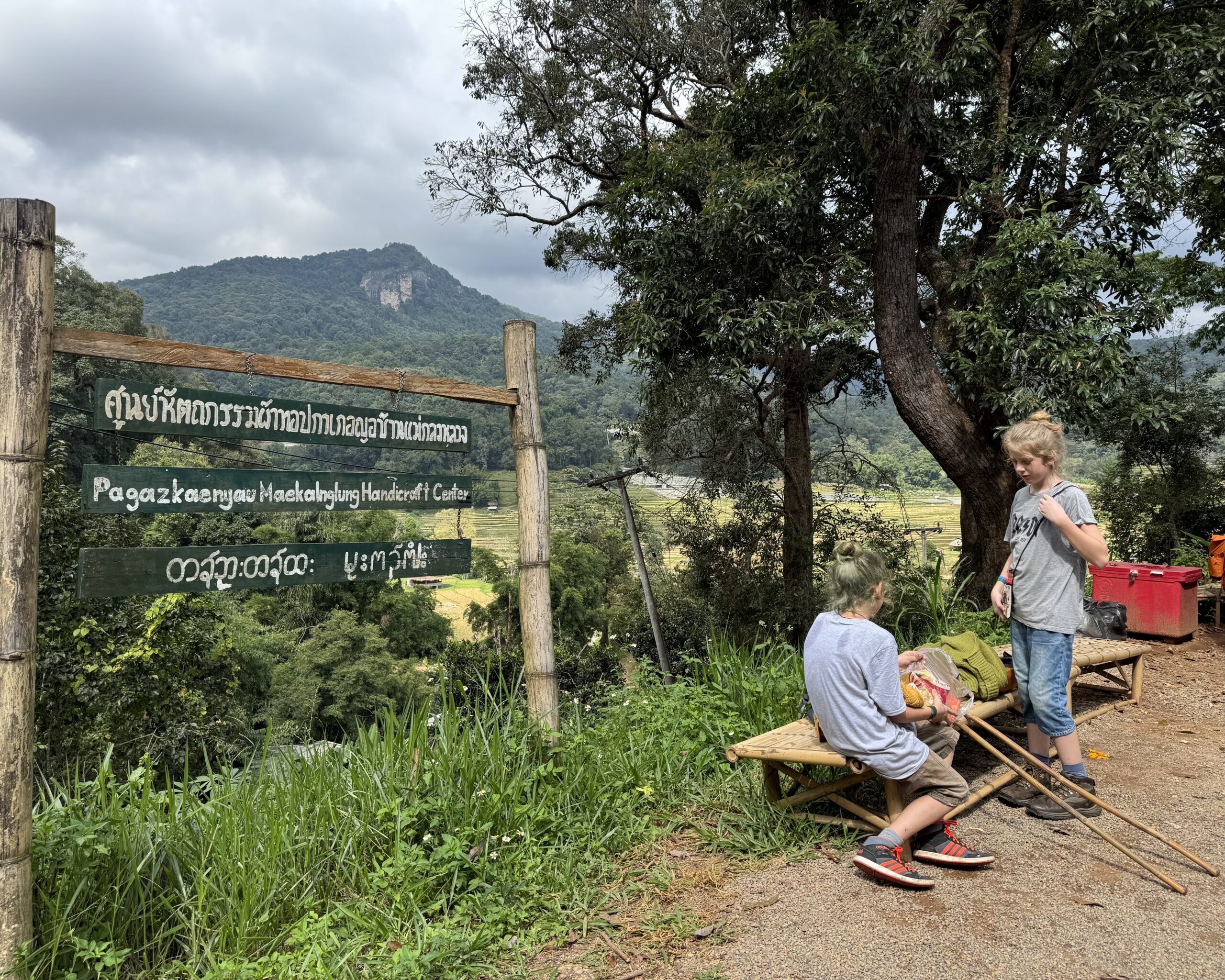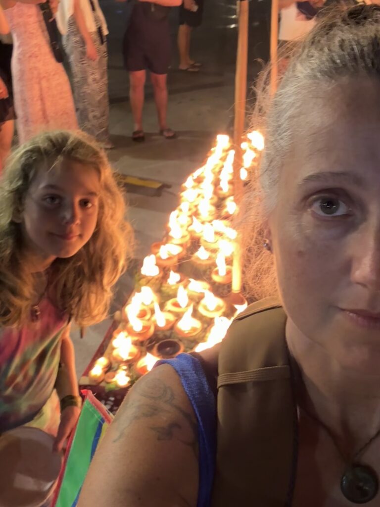 Door de aardige vrouw van de hostel werden we gisteren al uitgenodigd om vandaag zelf een krathong te leren maken. We hadden afgesproken om 6 uur en we waren precies op tijd terug van het zwemmen. Wat leuk om te doen en wat extra leuk om het zo geleerd te krijgen van haar, samen met de kinderen van hen. Het is nog best makkelijk te doen als je eenmaal weet hoe het zit. Ibis vond die van hem echt super mooi worden en was reuze trots op zijn creatie (vol met nietjes 😂) en Storm was ook echt heel blij met zijn zelfgemaakte krathong. Morgenavond gaan we naar de rivier om onze kaarsjes en wierook aan te steken en onze krathongs de rivier af te laten varen. Hopelijk blijven ze goed drijven.