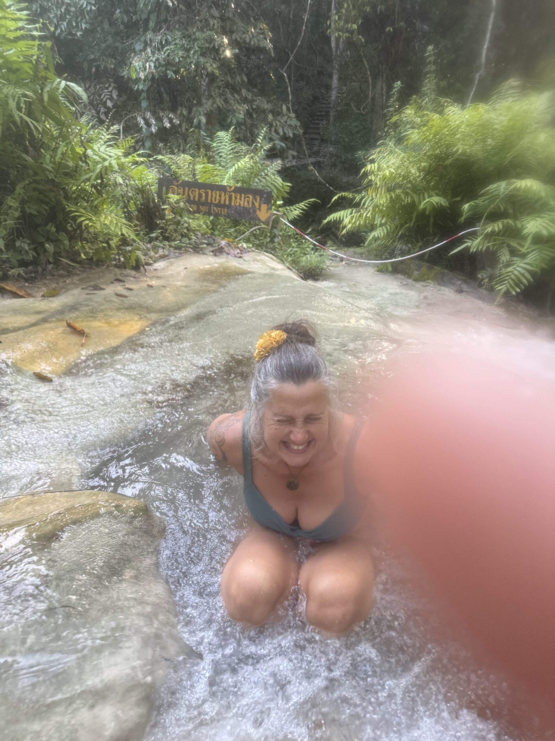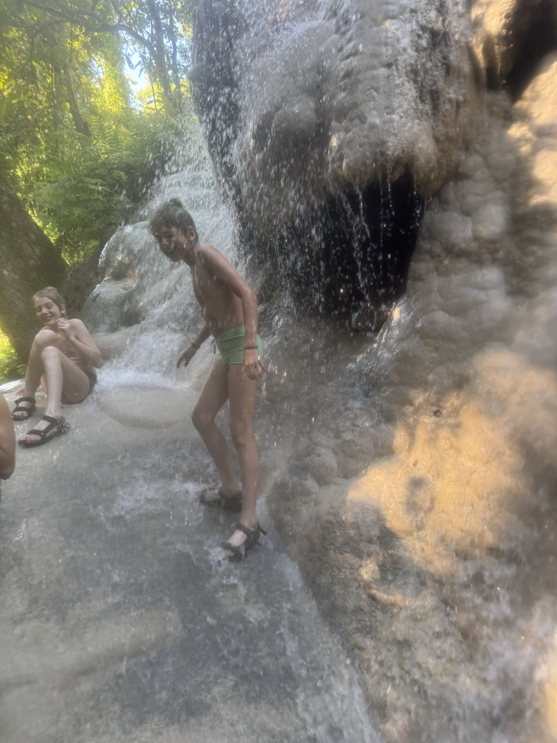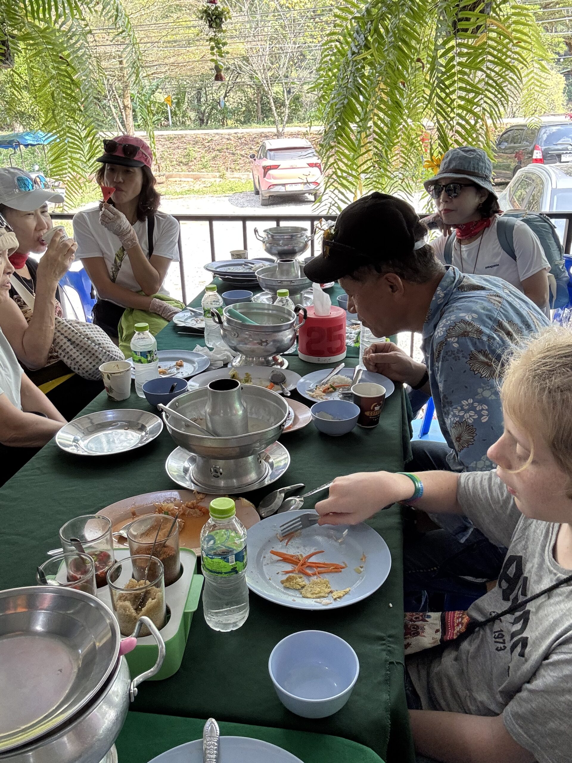 Ontbeten bij Sailomjoy en ons daar door een (veel te dure, maar feestdag, dus duur) taxi op laten halen voor de Sticky Waterfalls.