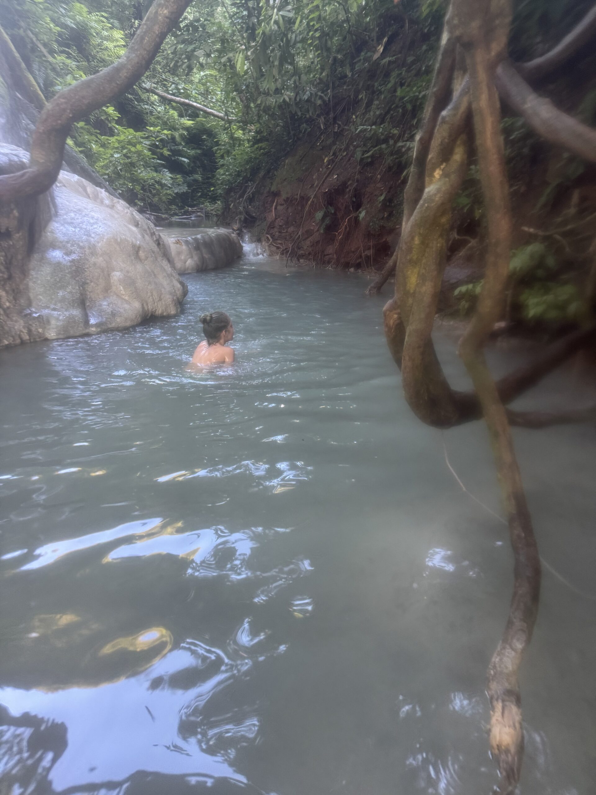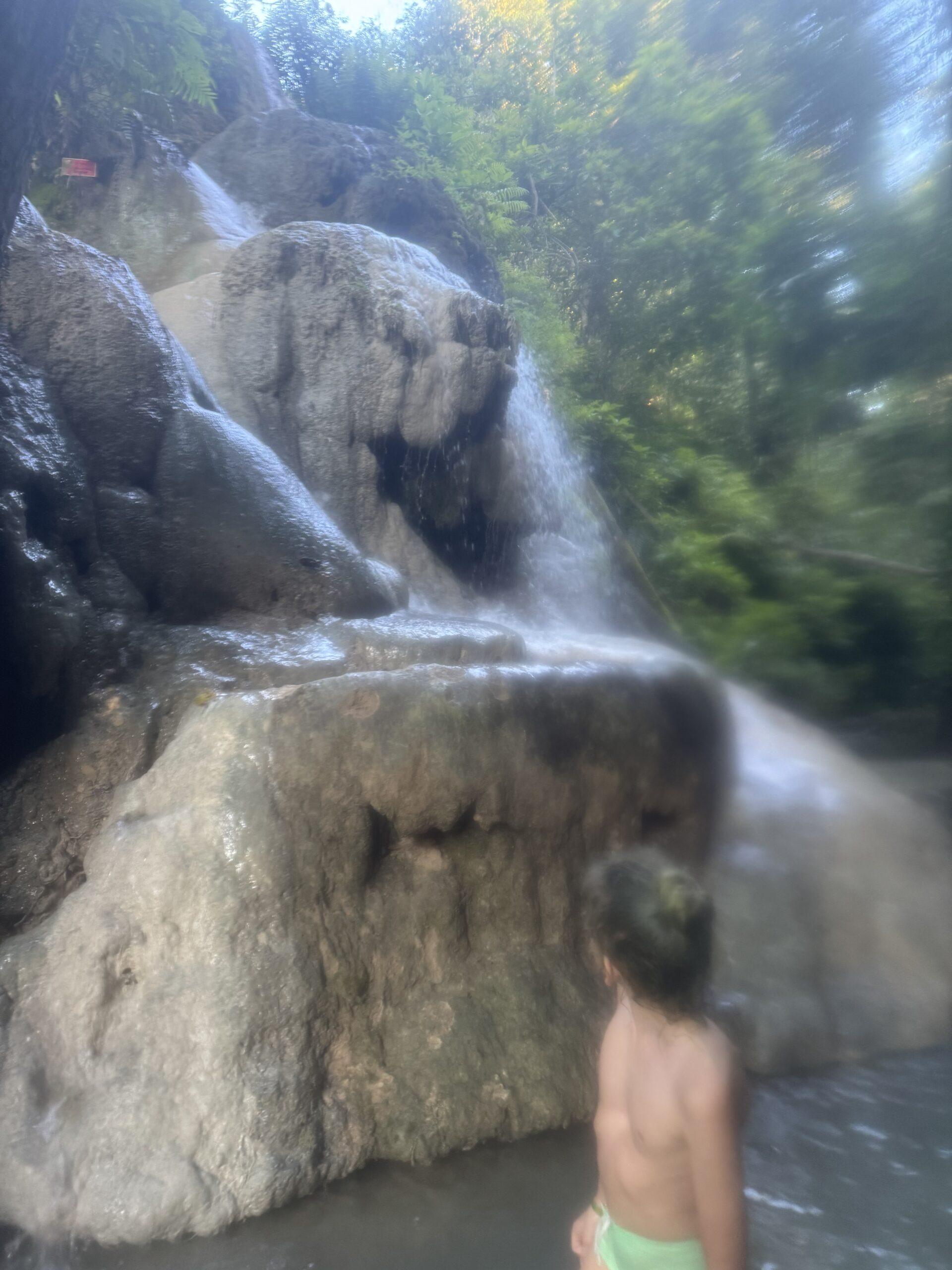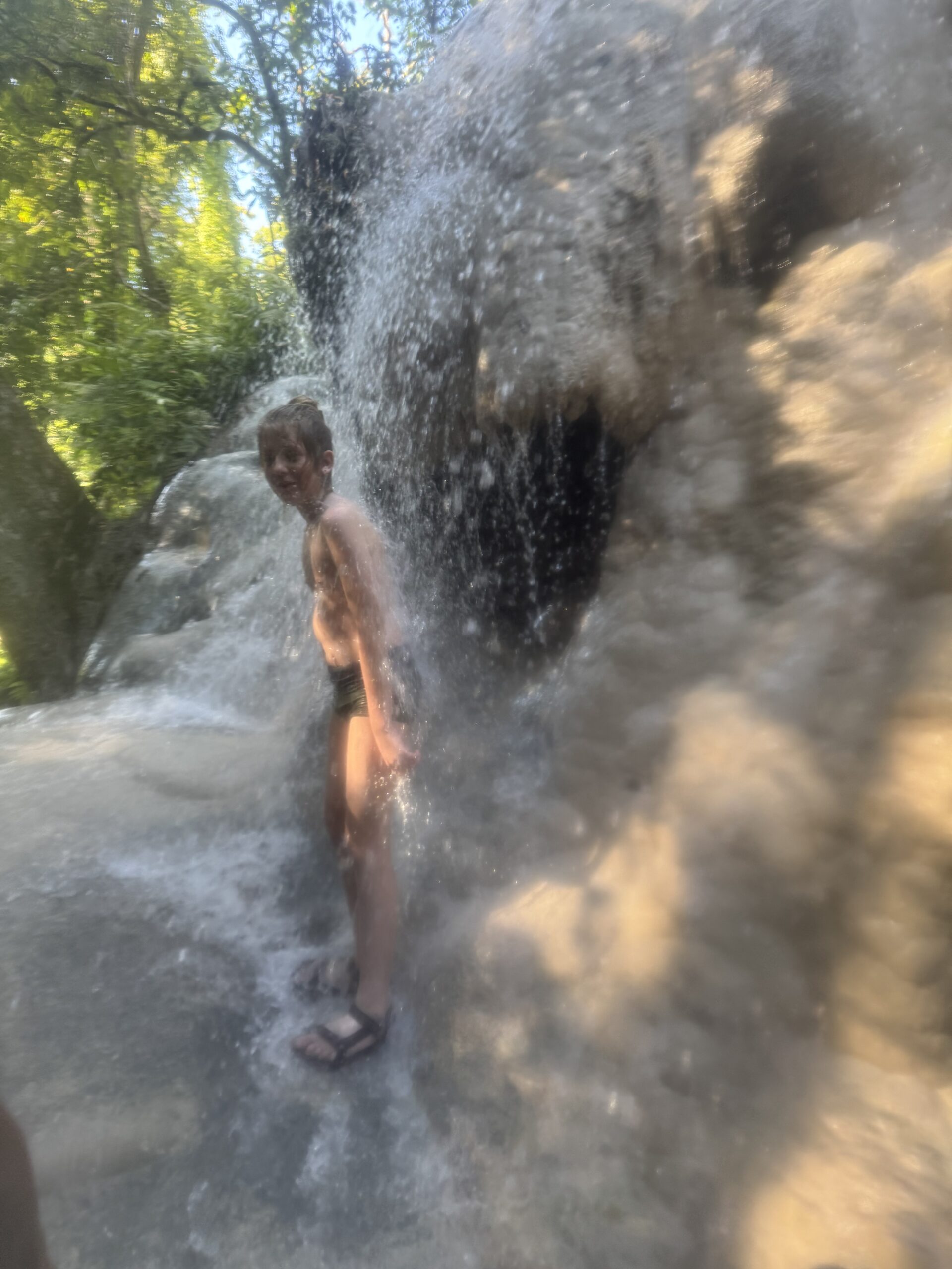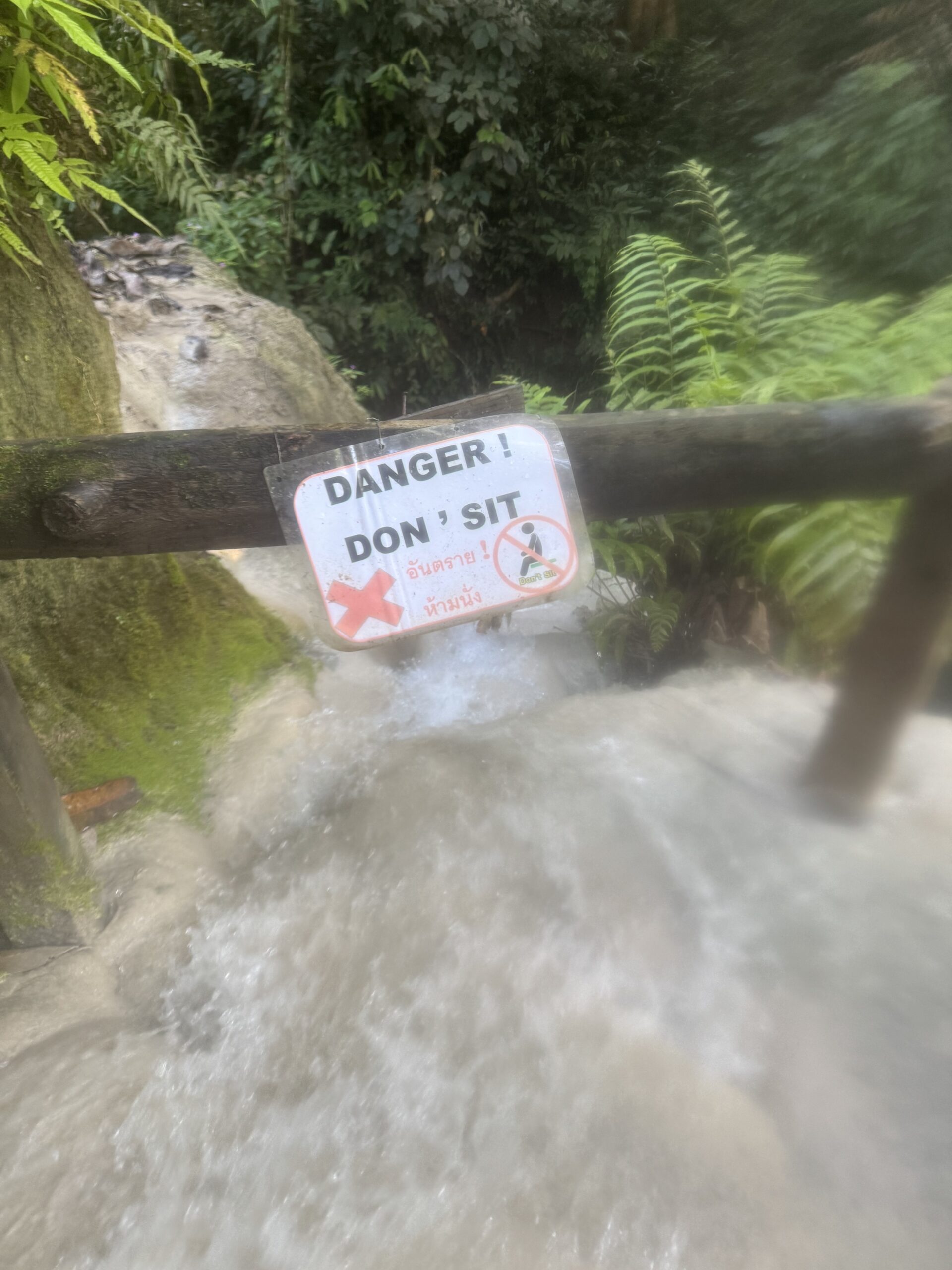 Ontbeten bij Sailomjoy en ons daar door een (veel te dure, maar feestdag, dus duur) taxi op laten halen voor de Sticky Waterfalls.