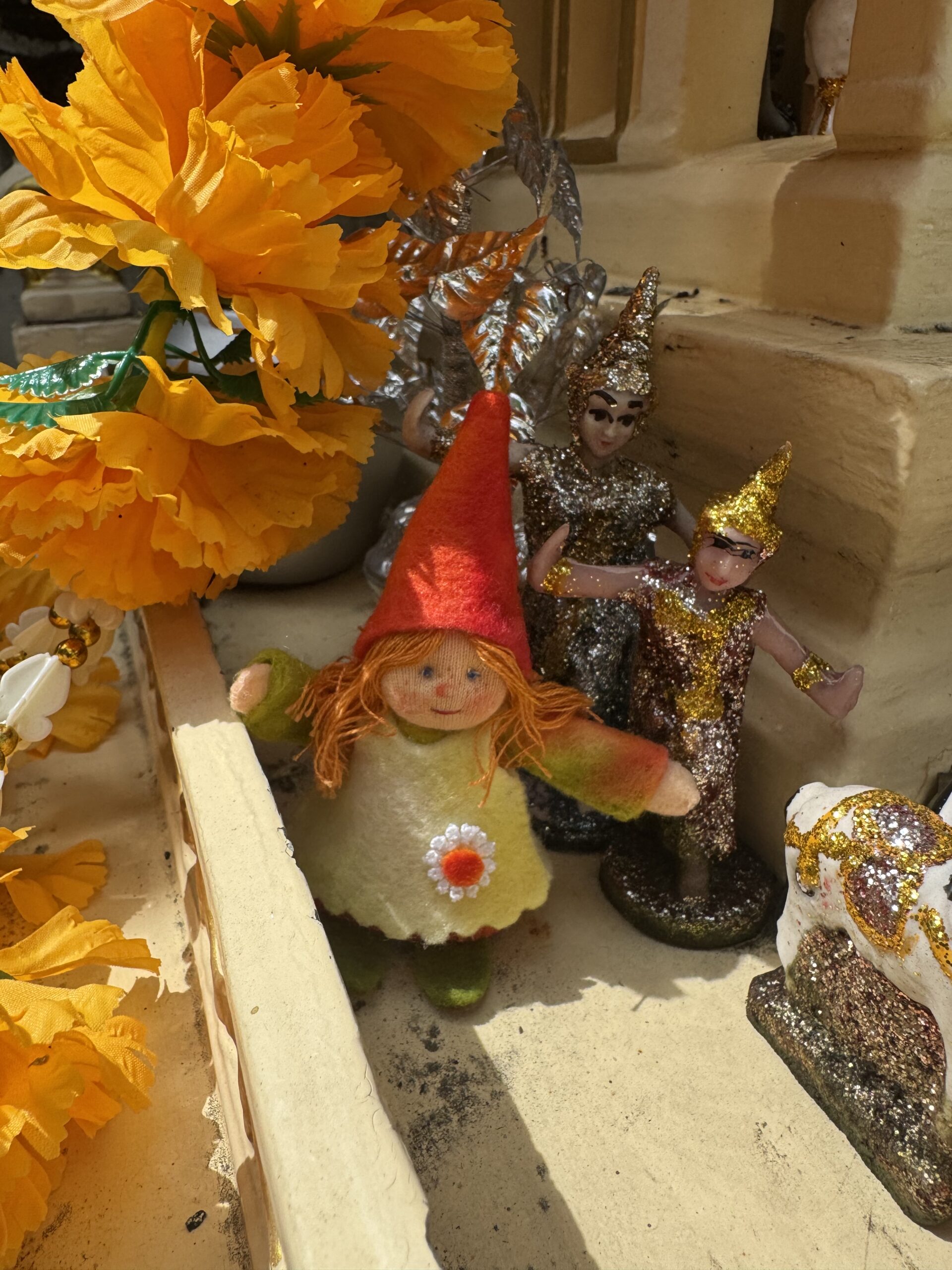 Toen we bijna bij de hostel waren knalde een kloot-toeristje van een jaar of 17 een rotje precies toen wij langsliepen en onze oren klapten kei hard op doof, maar het vuurwerkding raakte ook Ibis’ been net boven de enkel en hij had er een bloedend schrammetje en grote schrik aan over gehouden. Ik had net een koffer gekocht, die zette ik al op de grond om dat joch z’n oren eens te wassen, maar hij liep excuserend achteruit snel de hoek om. Toen we wat verder liepen vond ik een afgebroken “diamanten” gesp en die gaf ik aan Ibis “Hier die mag jij hebben, omdat je gewond bent”, waarop Stom zijn gezicht begon te betrekken en opeens moest hij huilen… “Ik vind het heel erg dat Ibis pijn heeft”, waarop Ibis hem meteen begon gerust te stellen dat de pijn al vrijwel over was en dat hij vooral schrok. Toen werden we weer alledrie emotioneel, omdat we zoveel van elkaar houden. Haha, we moesten er tegelijk ook om lachen. Nou, gelukkig zijn de oren weer als vanouds en is het schrammetje met honingzalf rustig gebleven. Eenmaal in de hostel moest echt eerst de mini-lego geprobeerd worden en konden we pas om 1 uur gaan slapen. Net op tijd nog getipt door Dave dat we de schoen mochten zetten, dus dat hebben we gedaan, gezongen en ze gevuld en toen oogjes dicht.