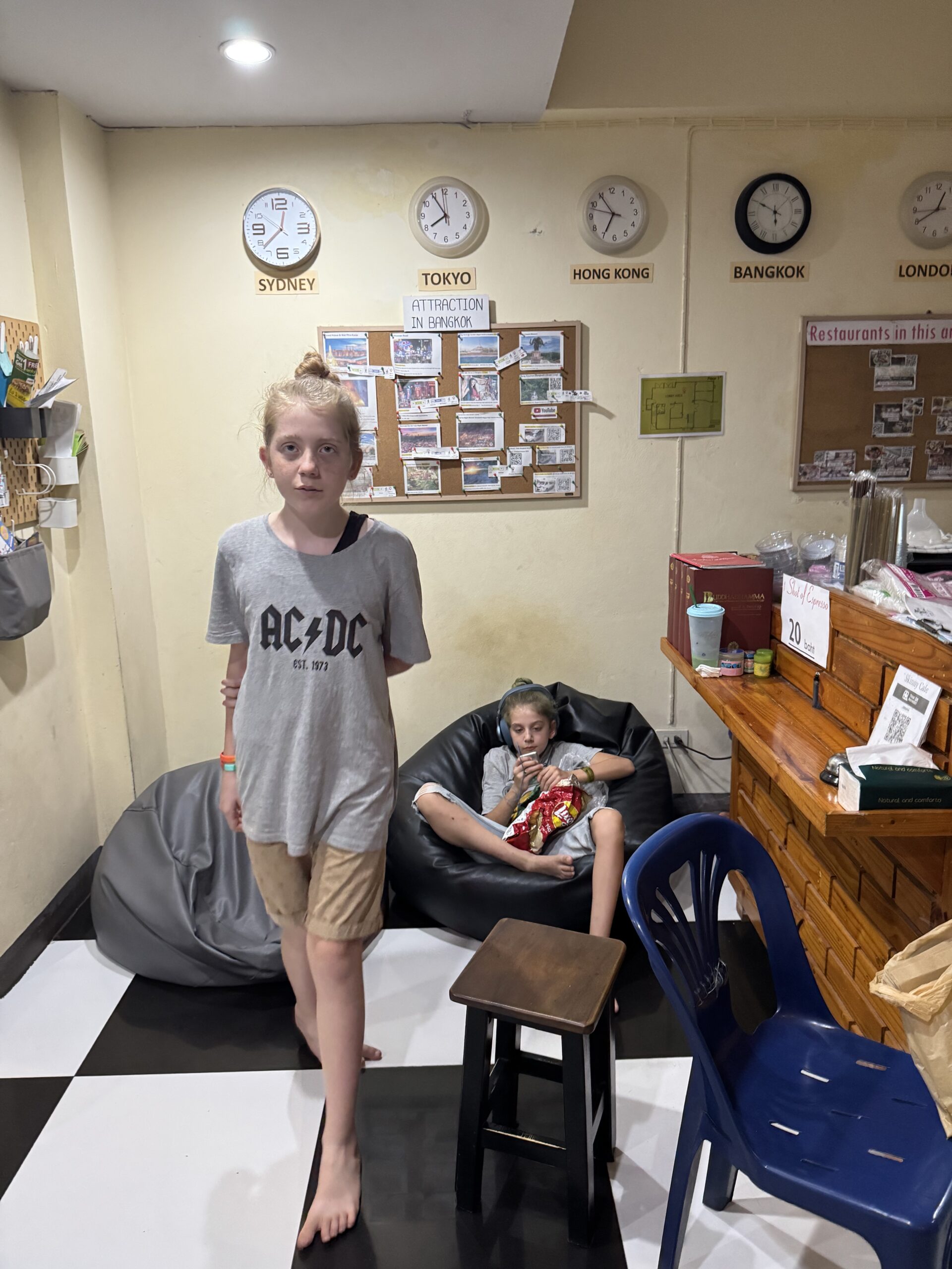 In de middag voelde ik me iets beter, heb ik thee gedronken en zitten lezen. We hebben eten afgehaald waar we twee dagen hadden gegeten, nu rustig bij de hostel en ik hoefde niks. Wel nog chips gegeten tijdens het pesten, en daarna in bed gelezen. Hopelijk morgen weer fit.