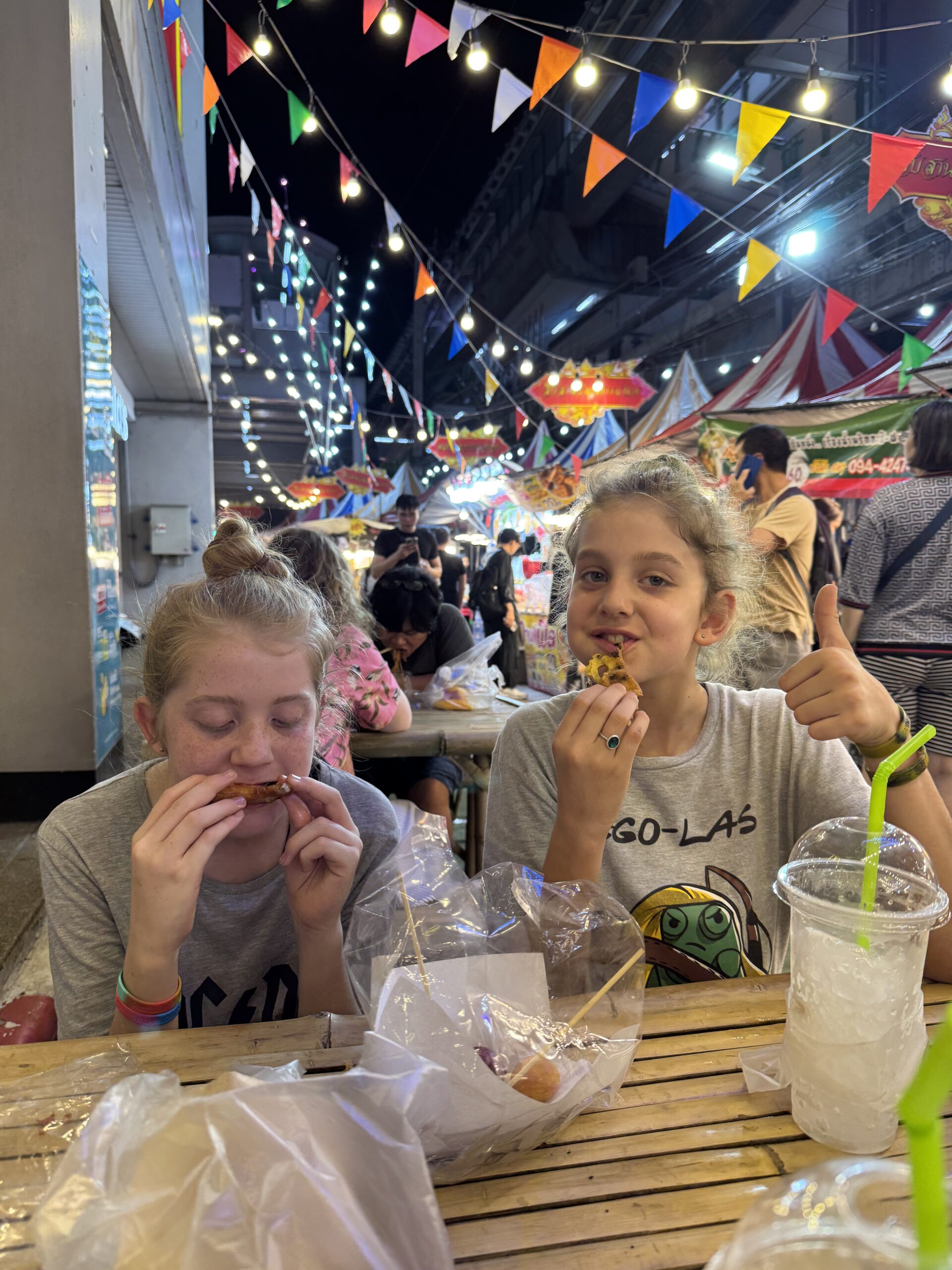 Vanavond zijn we weer terug gegaan naar Lanna Square om te eten. We gingen pas om 21u en waren iets voor twaalf terug. Toen hebben we nog even kunnen videobellen met Raven, Fee en Dave. Raven heeft de gitaarles van Ibis ingevuld en vond het heel leuk. Fijn m te horen. De jongens hebben het hier enorm naar hun zin. Ze vinden de mensen aardig, ze kennen al heel wat routes die we lopen en kunnen zelfstandig hun eten en drinken kopen. Super leuk om te zien.