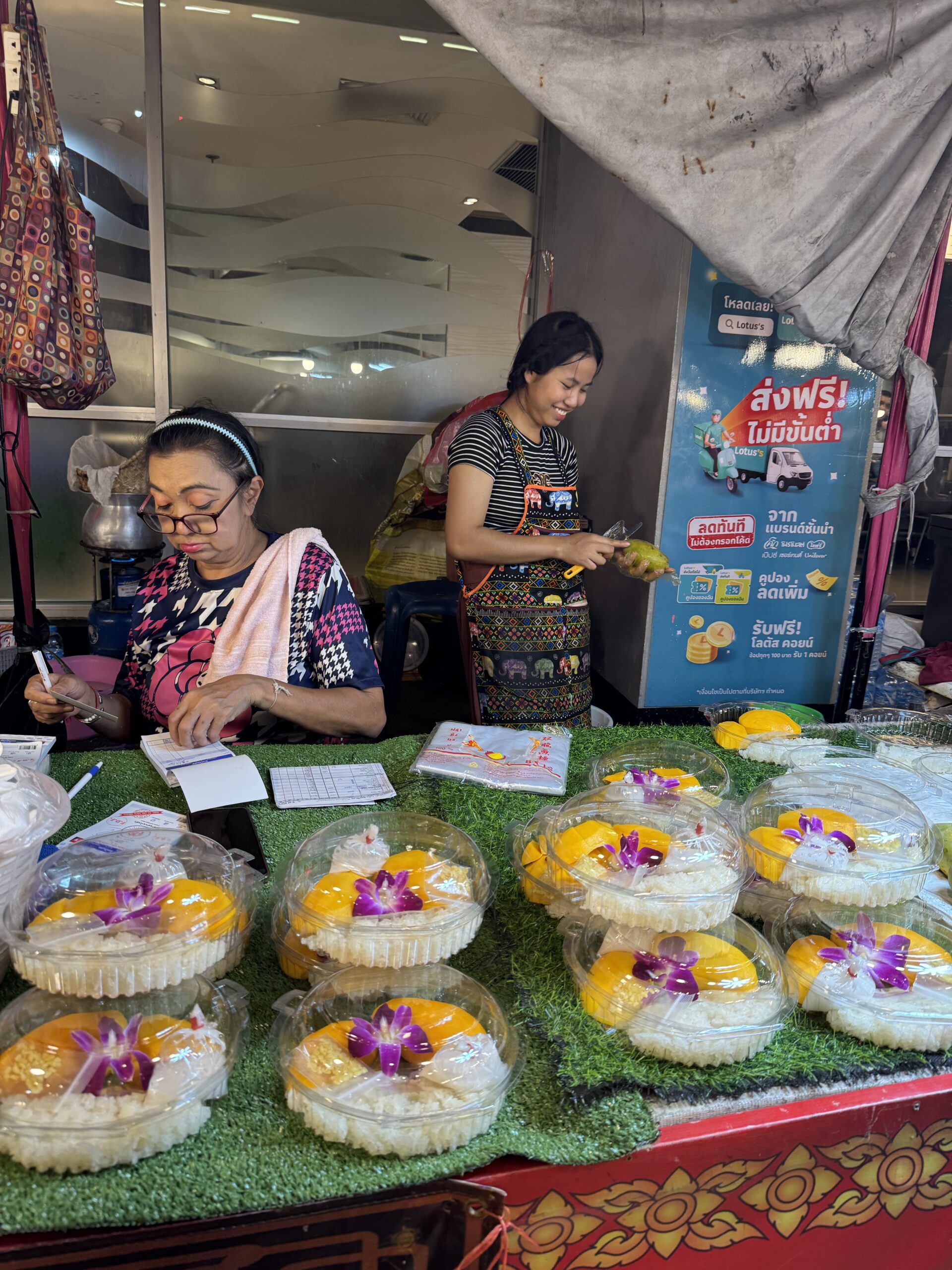 Vanaf On Nut 13 minuten lopen naar Hide Hostel, maar eerst even bij de Lotus naar het foodcourt om te eten.