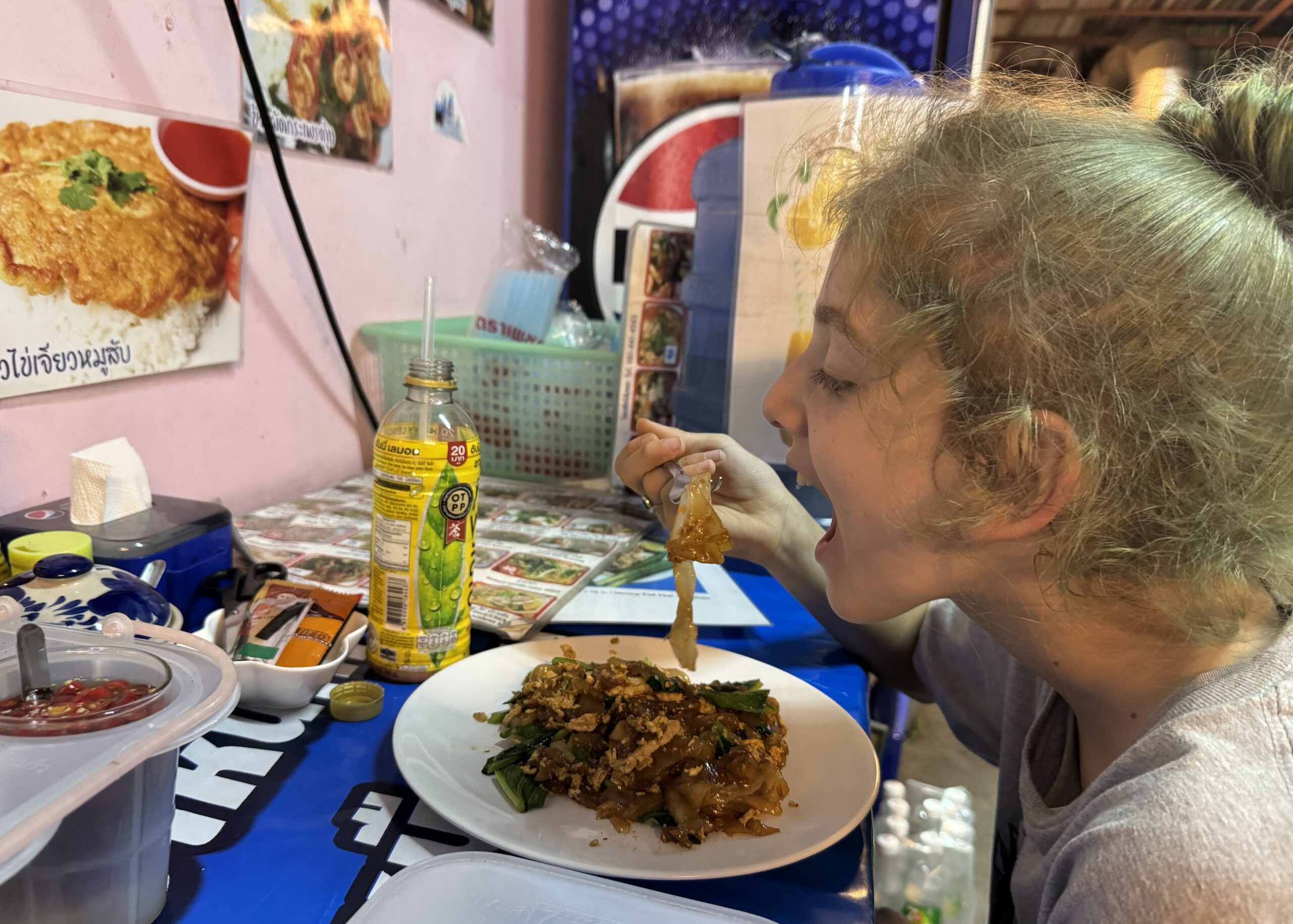 Vanavond aten we bij een restaurantje, maar dat vond ik enorm tegenvallen. Er zat amper smaak aan mijn veel te gaargekookte pad thai en er zaten welgeteld drie garnalen in die eveneens geen smaak hadden. Morgen dus weer naar de foodmarket en daar echt eten halen.
