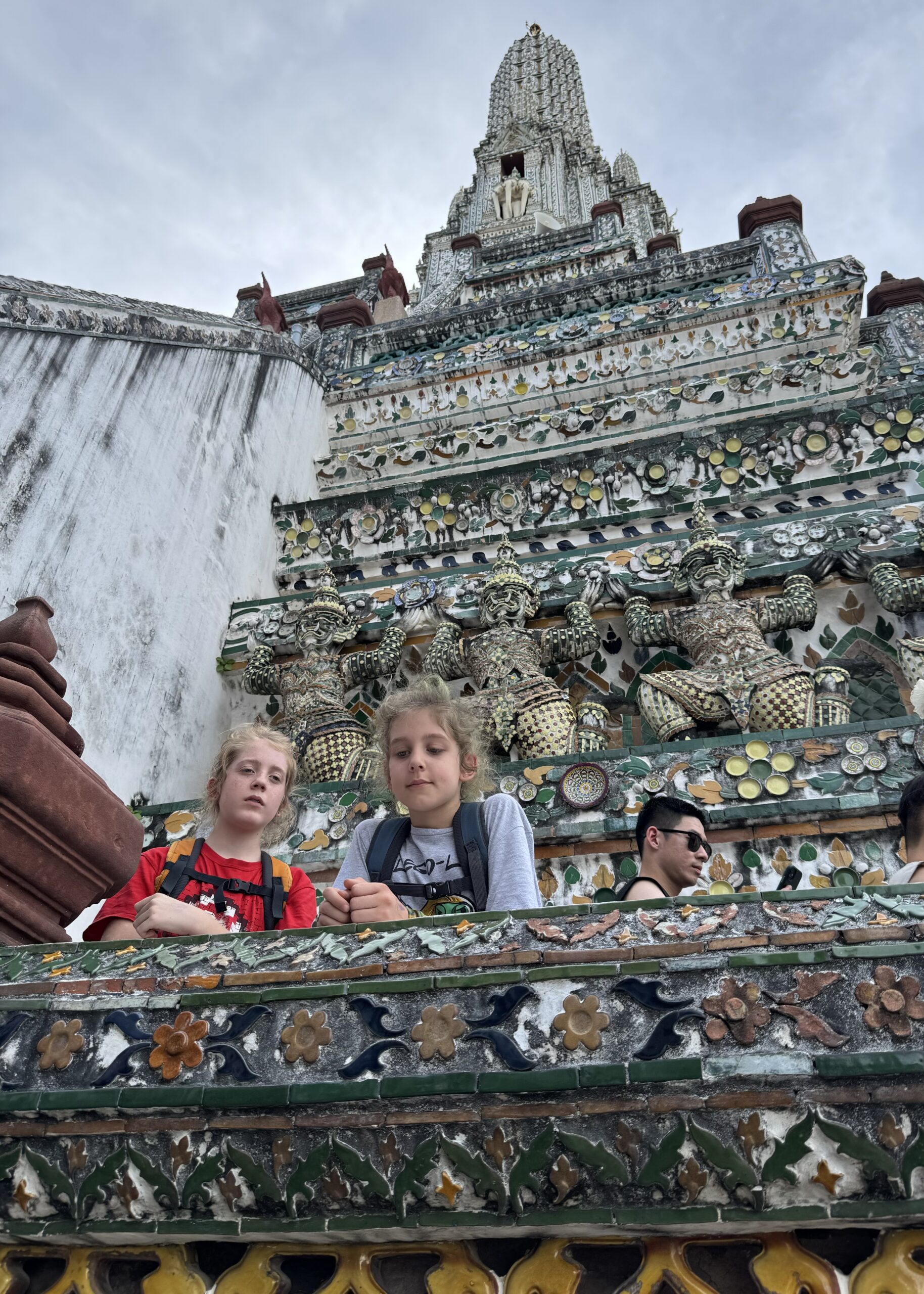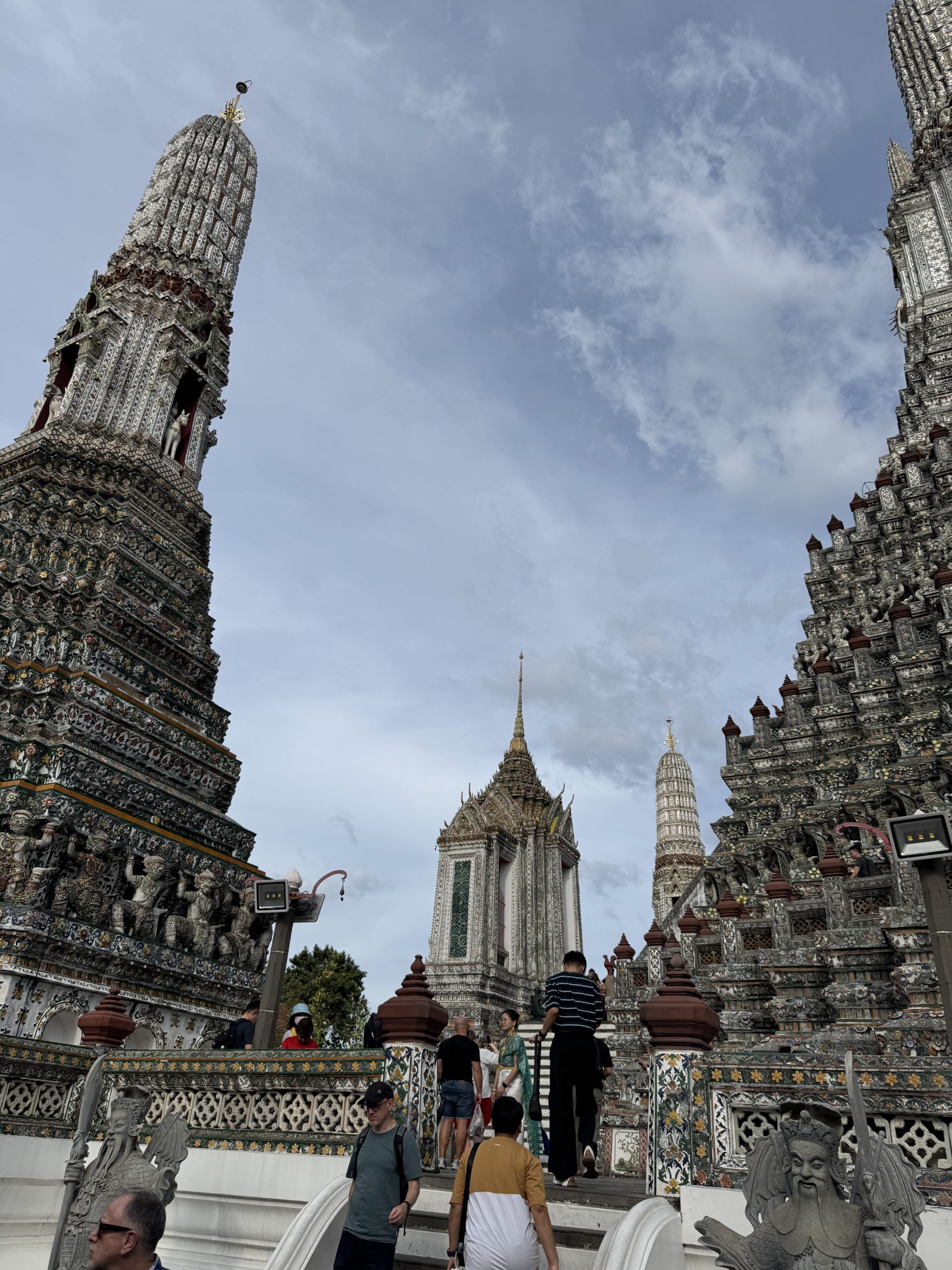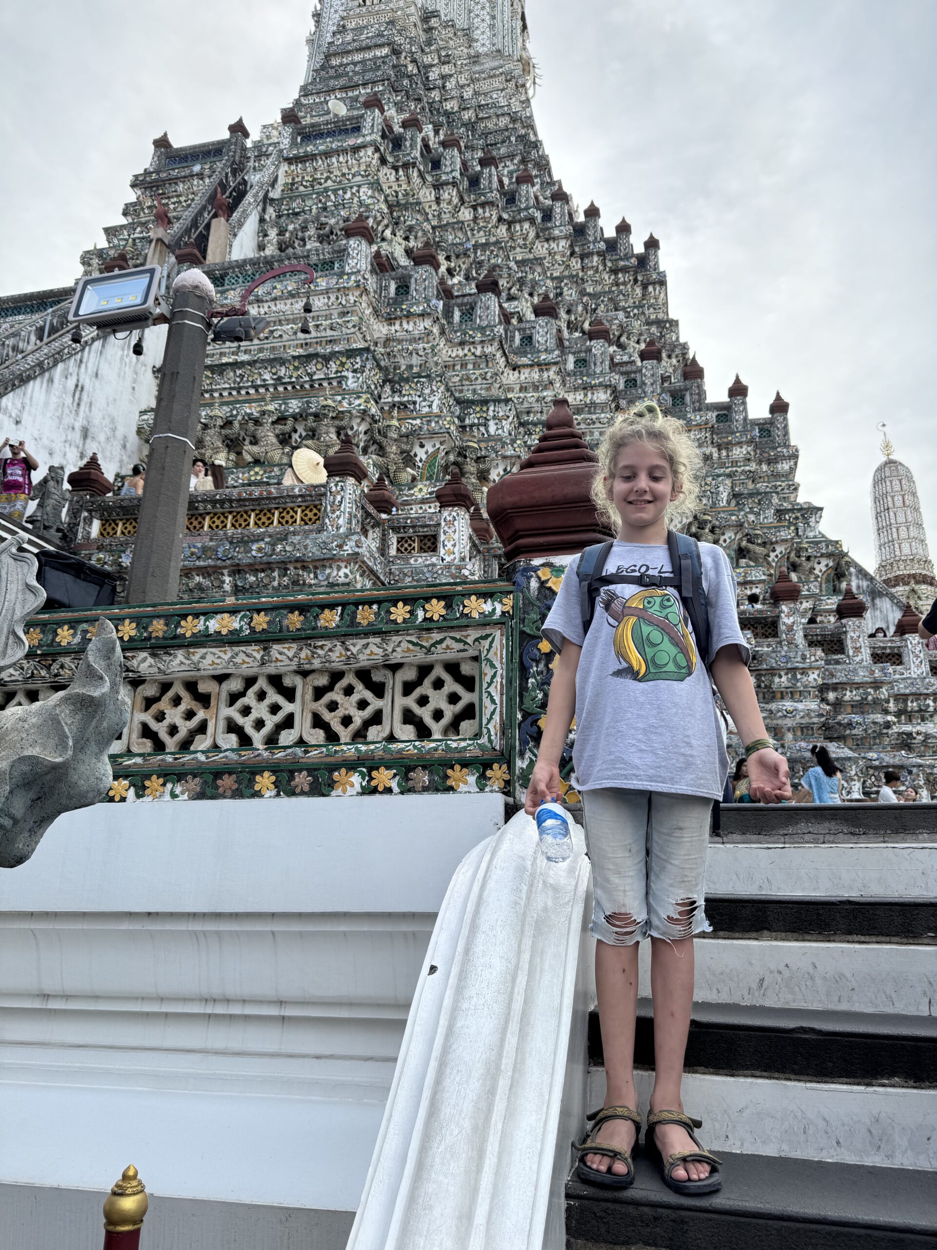 De eerste keer op de boot voor Ibis, hij vond het super leuk om te varen! We kwamen te laat aan bij het paleis van de koning; om 4 uur en het was al een half uur gesloten. Dan gaan we gewoon nog een keer. We waren wél bij Wat Arun, prachtig met al die mozaïek en de twee beroemde reuzen die de poort bewaken. ‘s Avonds weer lekker eten bij zelfde “stalletje” dichtbij (vanuit Hide hostel rechts straat uit en naar links, 80 m verder aan de rechterkant), Storm ging ‘s avonds lezen en Ibis en ik deden een potje pesten. Later kwam Storm ook nog een potje meedoen.