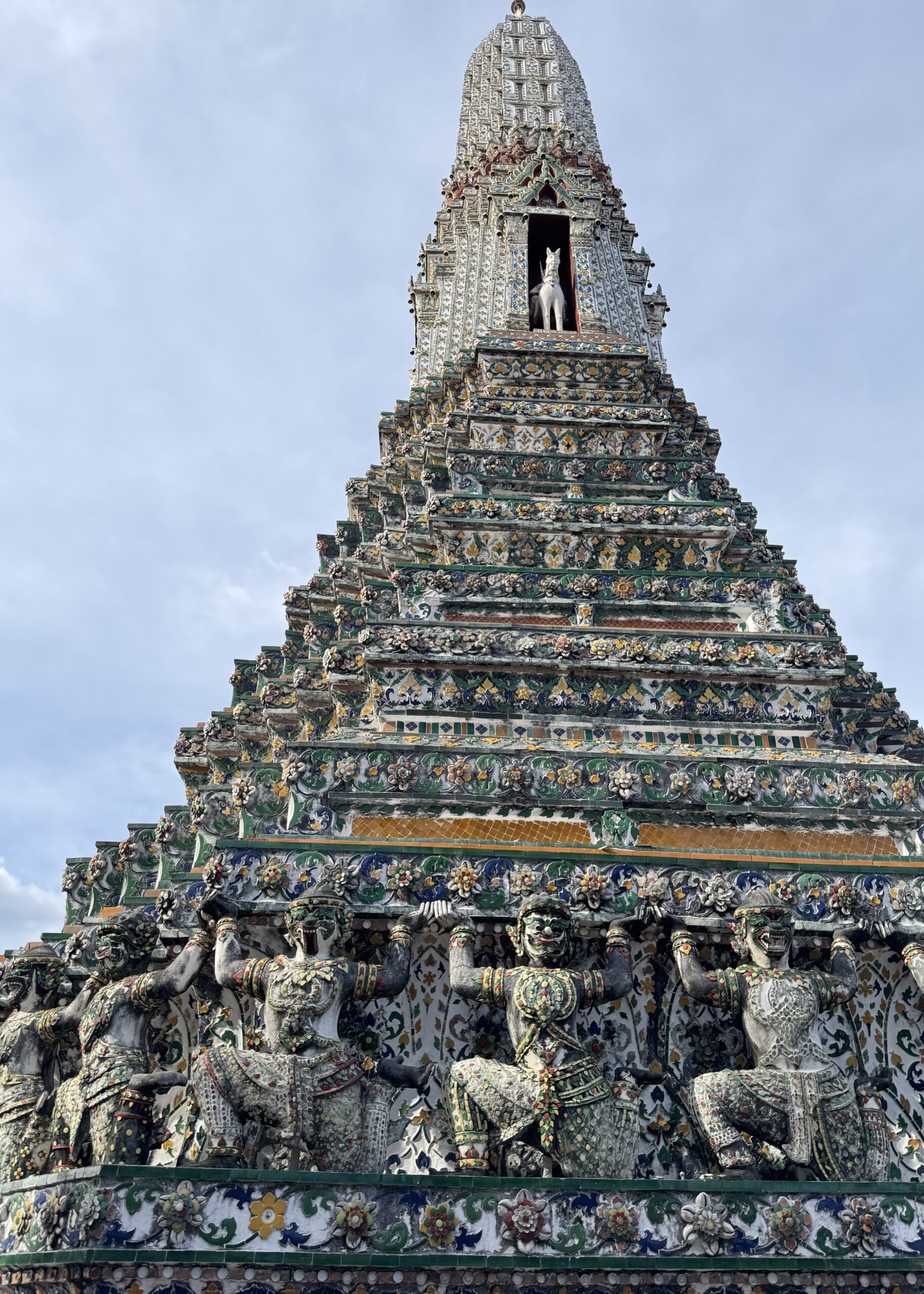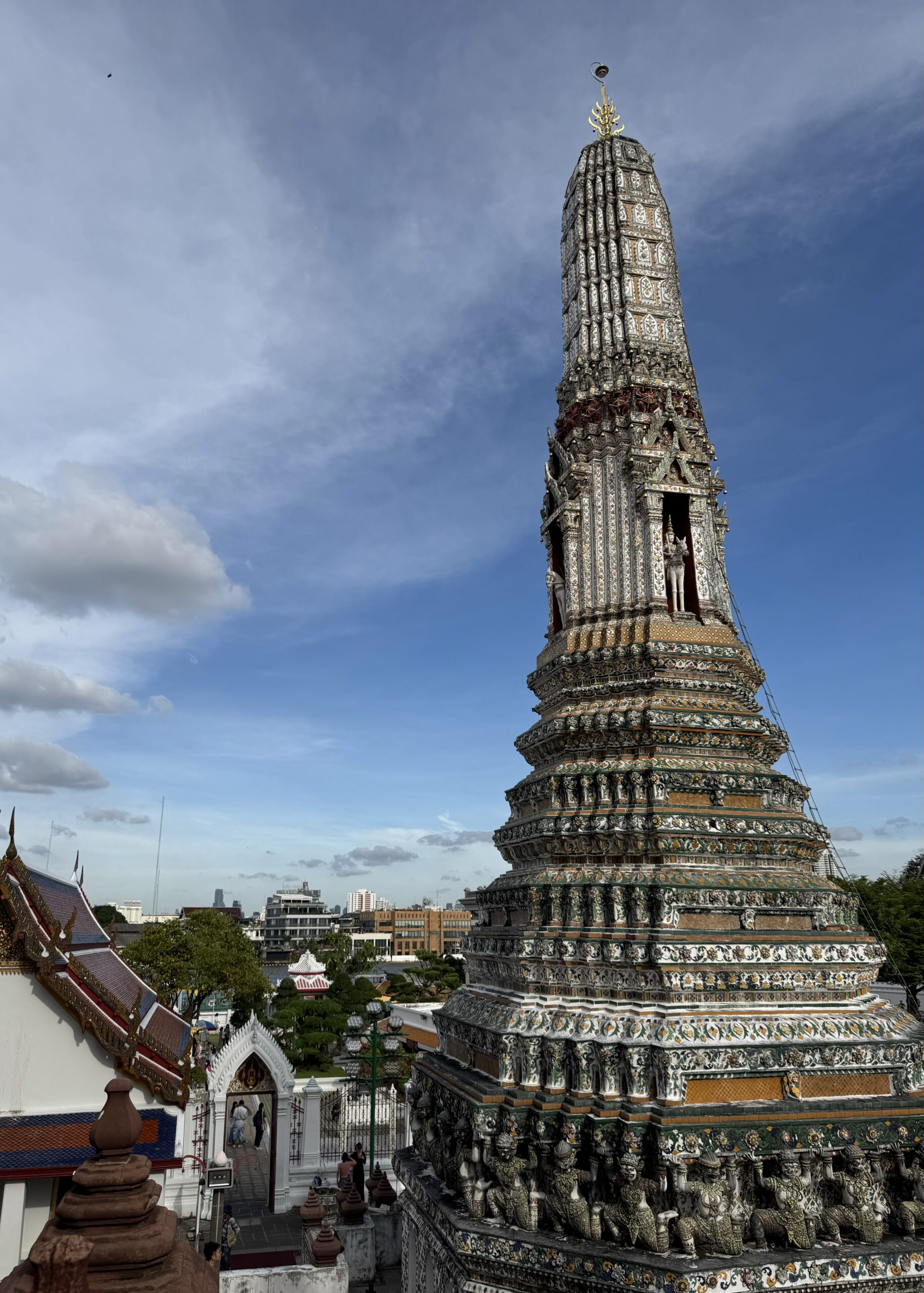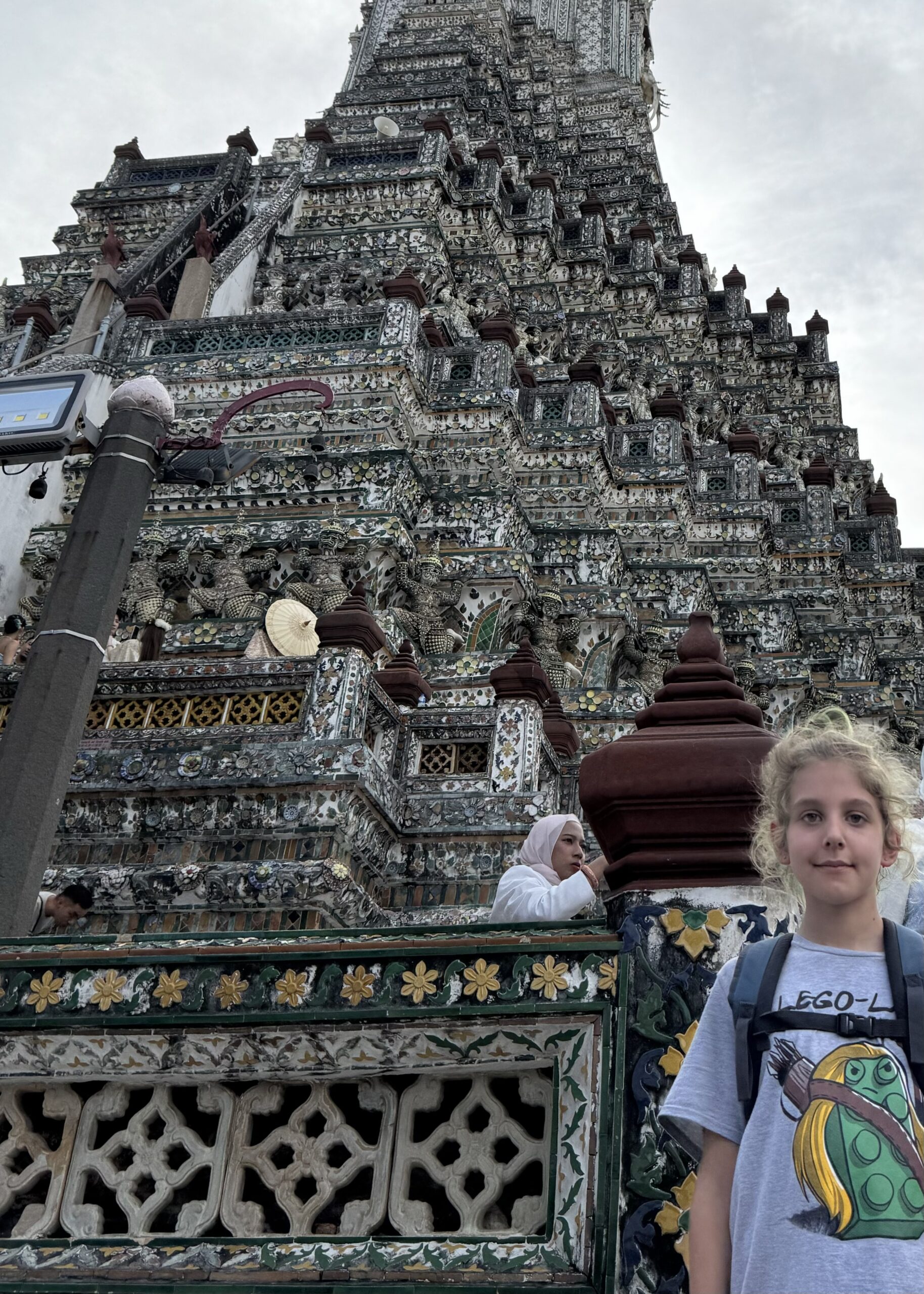 De eerste keer op de boot voor Ibis, hij vond het super leuk om te varen! We kwamen te laat aan bij het paleis van de koning; om 4 uur en het was al een half uur gesloten. Dan gaan we gewoon nog een keer. We waren wél bij Wat Arun, prachtig met al die mozaïek en de twee beroemde reuzen die de poort bewaken. ‘s Avonds weer lekker eten bij zelfde “stalletje” dichtbij (vanuit Hide hostel rechts straat uit en naar links, 80 m verder aan de rechterkant), Storm ging ‘s avonds lezen en Ibis en ik deden een potje pesten. Later kwam Storm ook nog een potje meedoen.