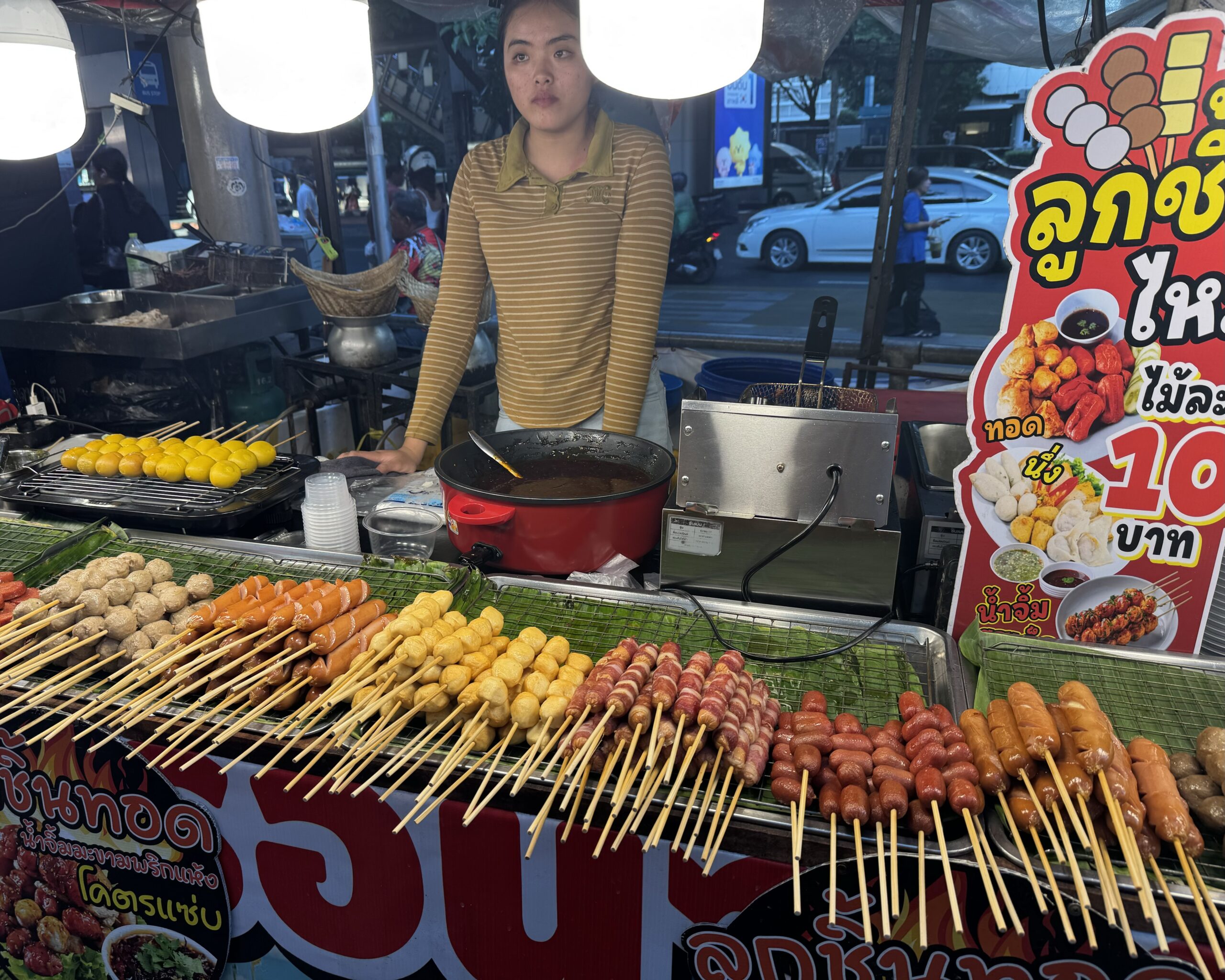 In de avond een nieuwe koffer gekocht, want alle kleine koffers zijn nu bij het vuilnis. Daarna lekker gegeten bij de streetfoodmarket naast de Lotus, waar ik vorig jaar met Swaen ook al heerlijk gegeten heb.