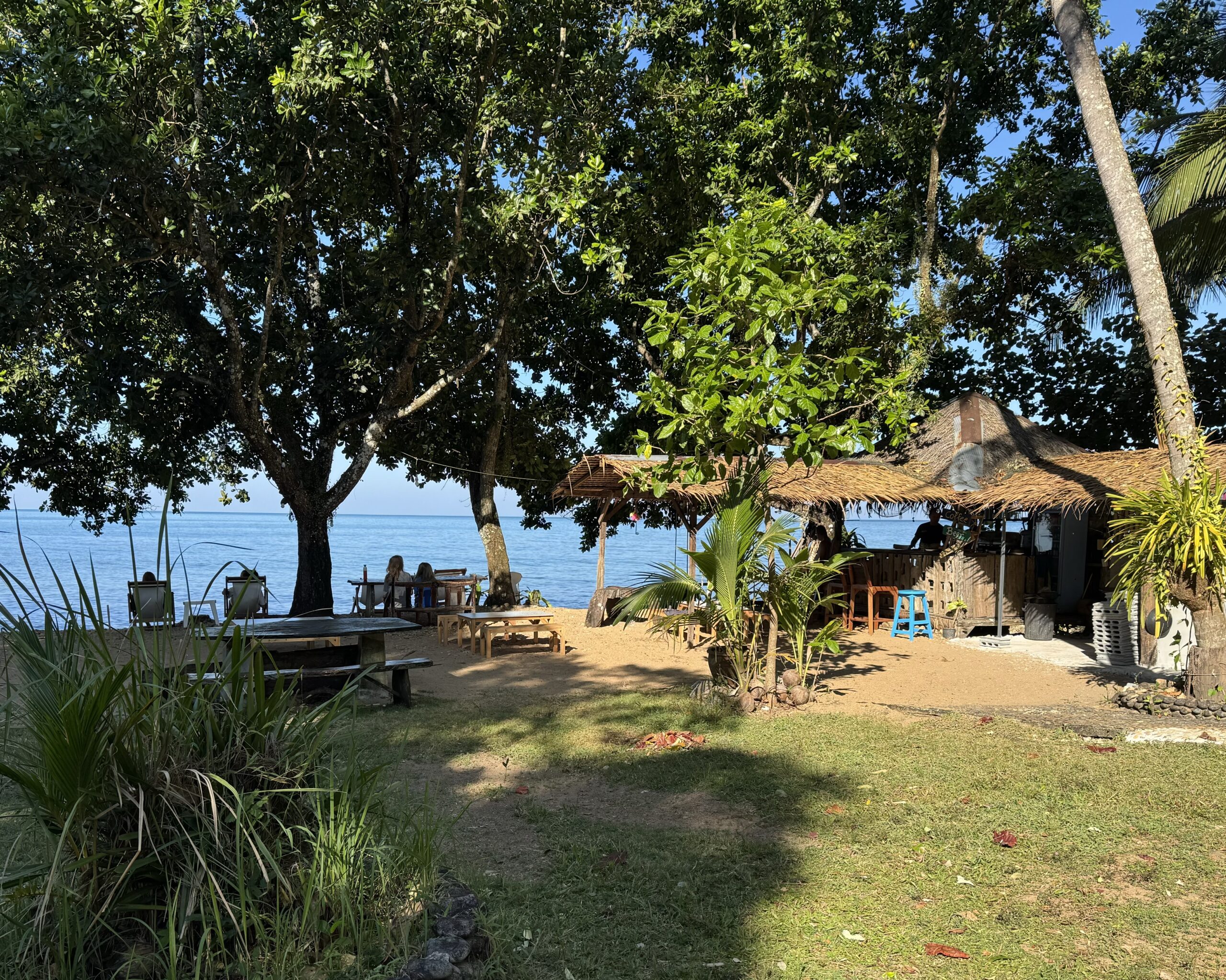 Naar Whitesands beach gegaan en daar een heel lekker kokosijsje gegeten. Toen na omkleden bij de hostel nog even getoerd richting het zuiden op de hoofdweg om daar de omgeving eens te verkennen. Was leuk. Op de terugweg stond er opeens een wegversperring van de politie, helmen controle…. En die hadden we dus niet op, terwijl de jongens de hele week hun eigen helm op hadden en sinds gisteren niet, vanwege het lastige inpakken. Ik had sowieso geen helm gepakt, want dat zit nooit fijn met lang nat haar enzo en er werd toch nooit op gecontroleerd/gehandhaaft en iedereen rijdt zonder helm…. Afijn, een bekeuring gekregen van wel Thb 500 (bijna €14,-) en daarna mocht iedereen na betalen weer helmloos doorrijden. Het was blijkbaar cashdag voor de politie. Nouja, raar dat ze de rest van de week er niets over zeiden, aangezien ik best vaak politie tegenkwam, of naast ze stond te starten met twee kinderen op de scooter. Maar zo zijn we dus onze weg vervolgd en hebben heerlijk gegeten en daarna lummelen in de kamer van de hostel, waar ik ukulele speelde en de jongens met Pokémon kaartjes bezig waren.