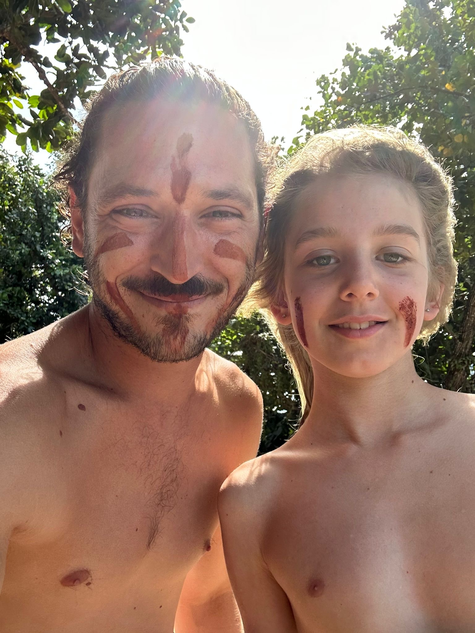 Rustig aan de dag gestart op het kiezelstrand (het zijn best mooie ronde stenen, maar loopt en zwemt niet relaxed). Toen ben ik even extra yoghurt en bananen en een nieuwe cabine-koffer gaan kopen. Er bleef ook nog een schattig pluizig konijnentasje aan mij plakken, heel blij mee en daarna hebben we de middag weer doorgebracht op white sands. Terwijl ik de boodschappen deed heeft Ibis “verf” gemaakt van stenen en die met Lucas uit Frankrijk uitgeprobeerd op zijn eigen gezicht, dat van Lucas en ook zijn vriendin Olivia. Daar kreeg ik nog een leuke foto van.
