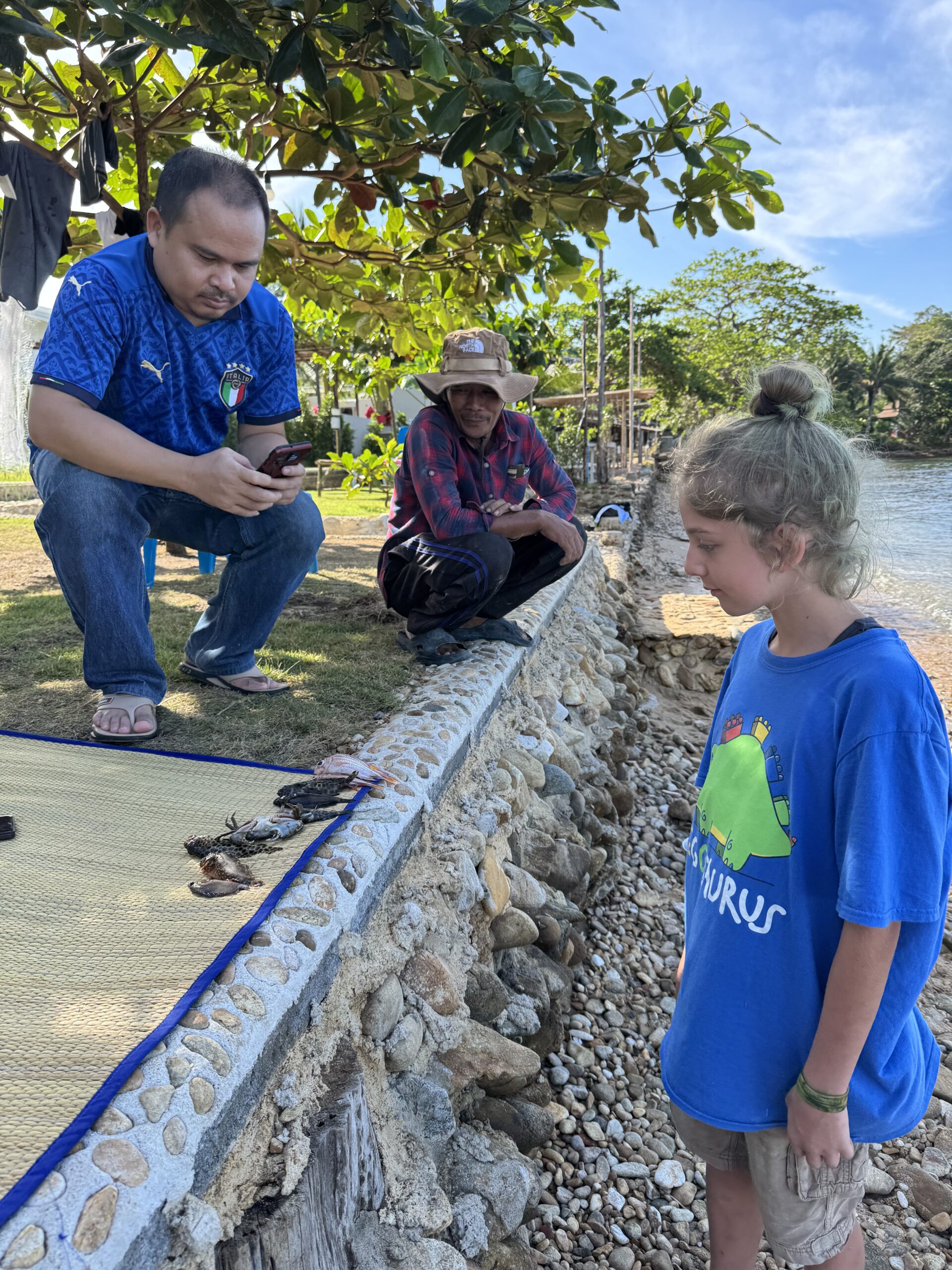 Heeeeel rustige zee, het snorkelen lukt Storm en Ibis nu eindelijk wél, dus veel gekeken onderwater en Ibis is vandaag door een krab gebeten. Niet heel hard, maar hij schrok er vooral van. Verder heeft Ibis nog zijn best gedaan om de wit met zwarte visjes te vangen met zijn handen, maar dat lukte steeds nèt niet, haha. Het was een fijne dag die we na het avondeten afsloten met een potje pesten en nu naar bed.
