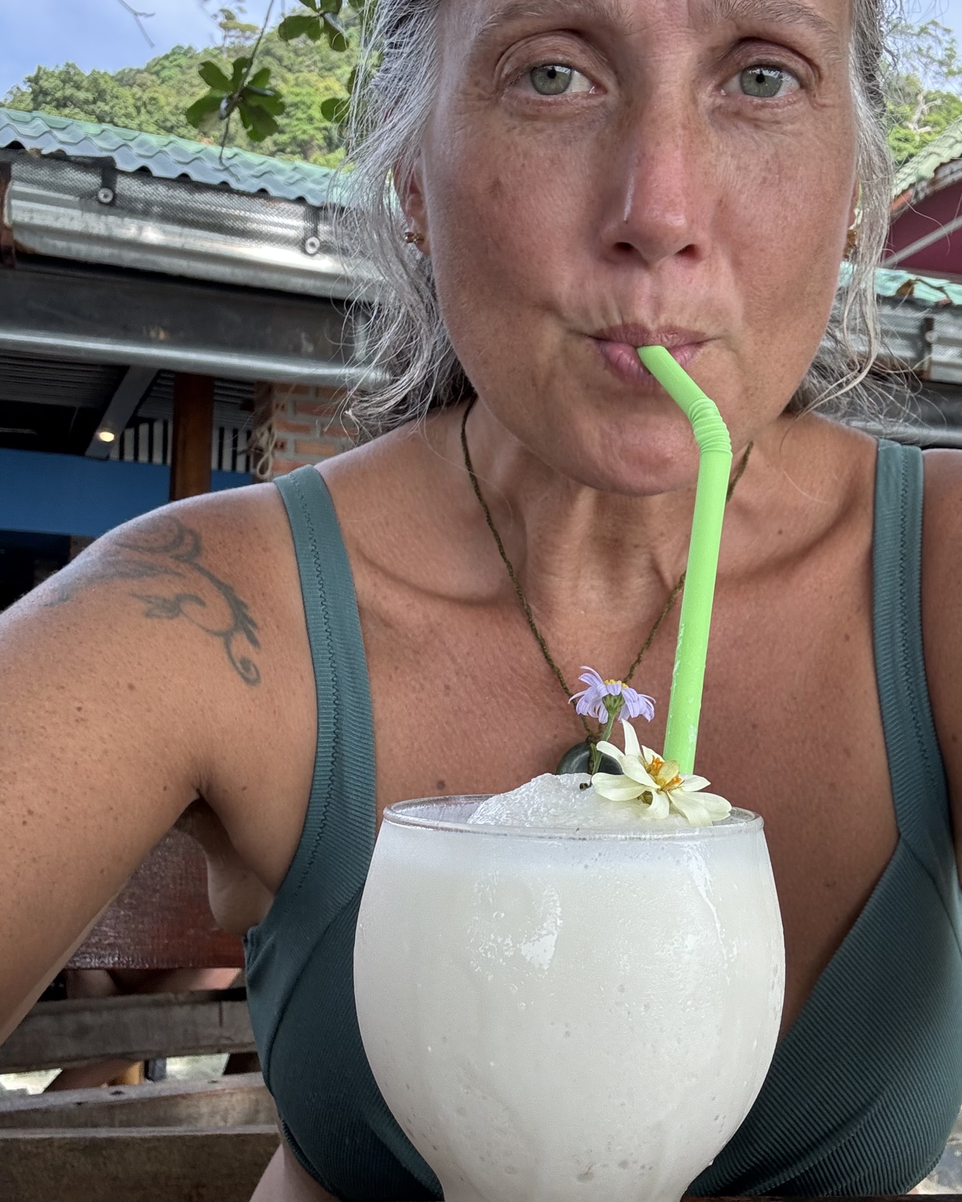 Dagje white sand beach, weer heerlijk cocosijs op een melkbroodje met wat sticky rice gegeten, avondeten bij @longChimp, waar ik onderweg daar naartoe een mooie bloem kreeg van Ibis om bij de andere bloemen in mijn haar te doen.